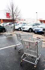 Un truc très amusant dans les centres commerciaux américains : on ne range pas son cadi une fois les courses terminées, on le balance dans un coin du parking ou bien on le laisse directement à coté de sa voiture :) C’est un peu compliqué pour se garer le soir vu qu’il y a des cadis partout, et les journées de grand vent il faut faire attention aux cadi qui ont toujours la priorité à droite mais on s’y fait. Avec Pompom on faisait du curling, en essayant de balancer le cadi au plus prêt des plaques d’égout :D
