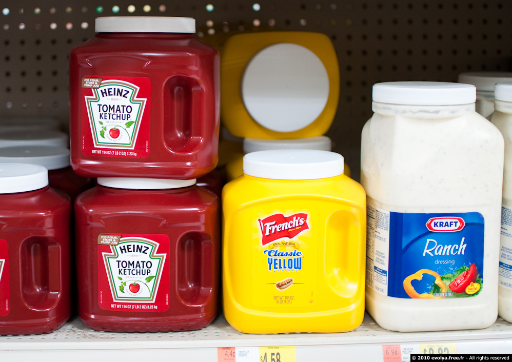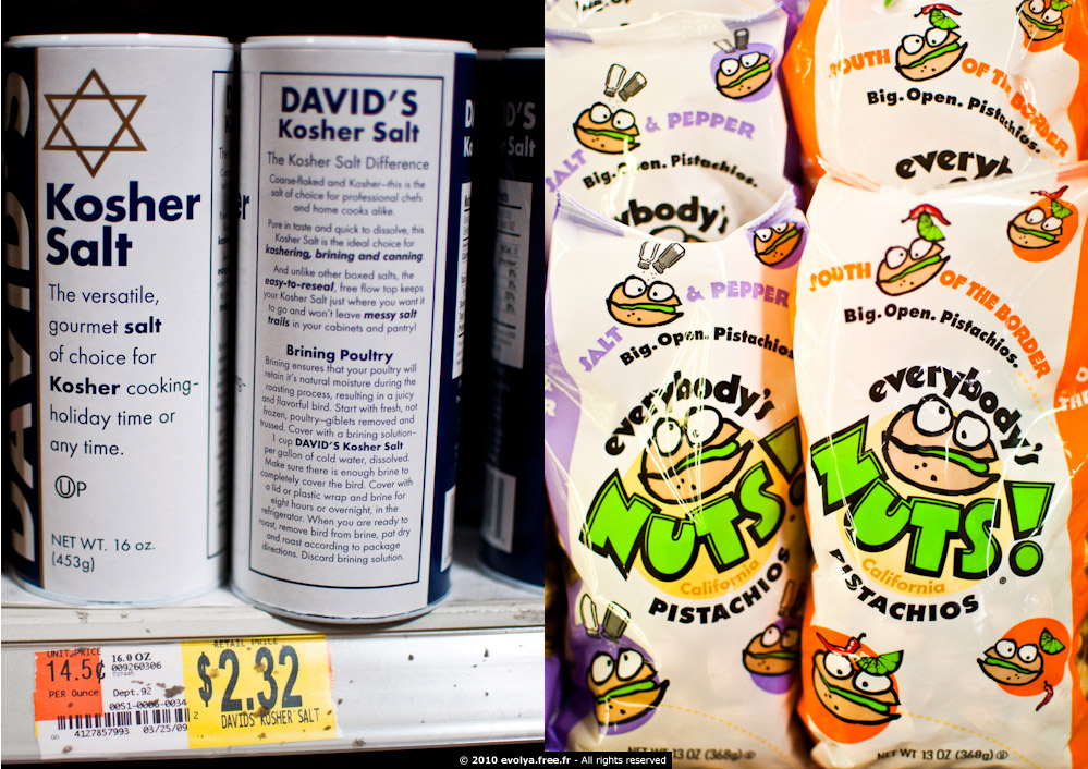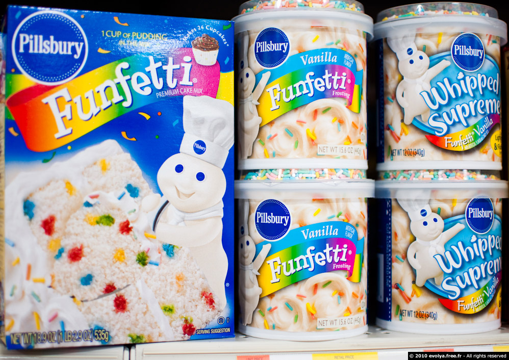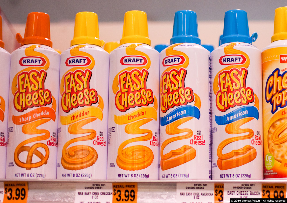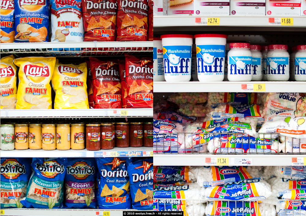 Concrètement, les Américains ont 20 ans d’avance sur nous concernant la nourriture : donuts fourrés à la crème pâtissière, céréales aux marshmallow, muffins remplis de crème chantilly, crème de marshmallow, bretzel sucrés enrobés d’un superbe glaçage, bonbons en formes de petits poussins entièrement en sucre, crèmes glacés nappées de sauces caramel ou cerise, fromage à tremper dans sa barquette de beurre de cacahuète, sodas énergisant multicolores, milk-shake pétillants à la pèche... que du bonheur pour devenir gros :)